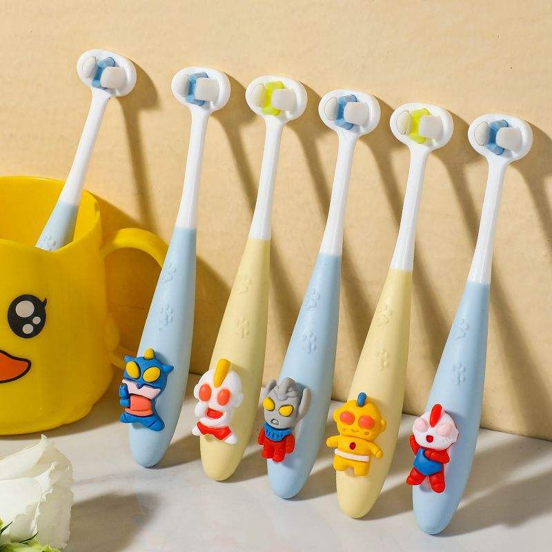 Baby Toothbrush Kid Children's and Infants' 5D Soft Fur Three Sided Cartoon Princess Ultraman 0-1-3-6 Year Old Toothbrush
