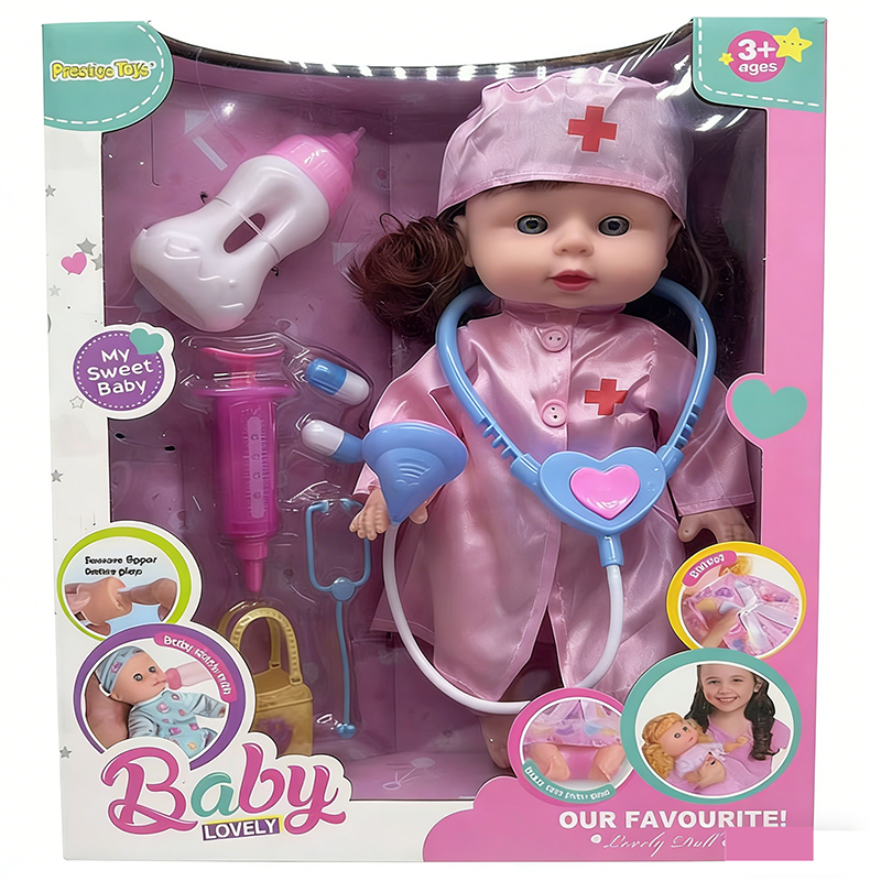 14IN Baby Voice Doll with Syringe, Capsules, Stethoscope & Bottle