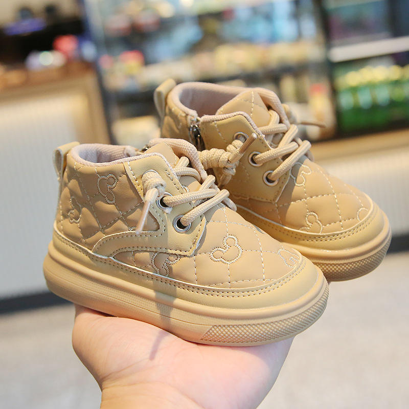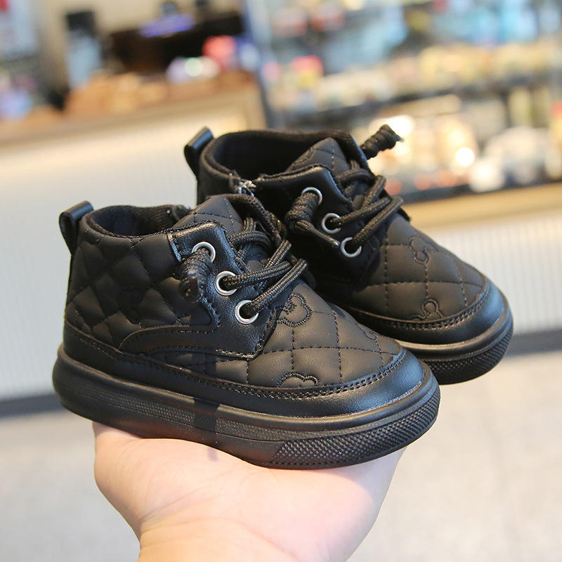 รองเท้าบูทเด็กแฟชั่นแบบผูกเชือกข้อเท้า หนังนิ่ม เย็บมือ พื้นยาง กันน้ำ กันลื่น