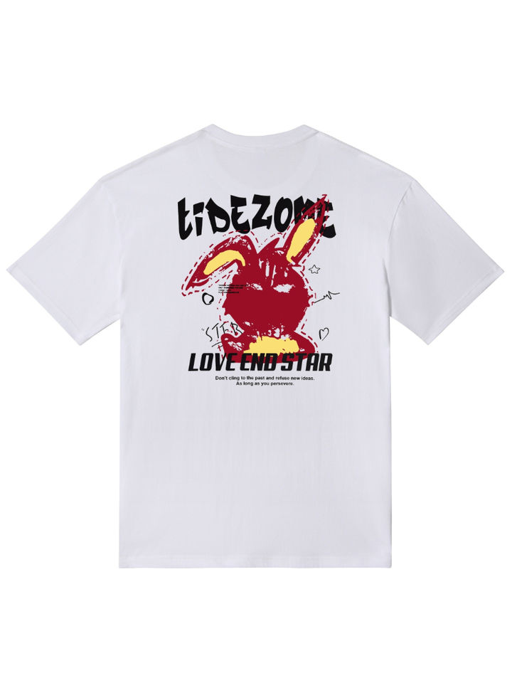 พิมพ์ด้านหลังเสื้อยืดกราฟิกผ้าฝ้ายผู้ชายเสื้อยืดหลวมลำลองยืดสำหรับฤดูร้อน