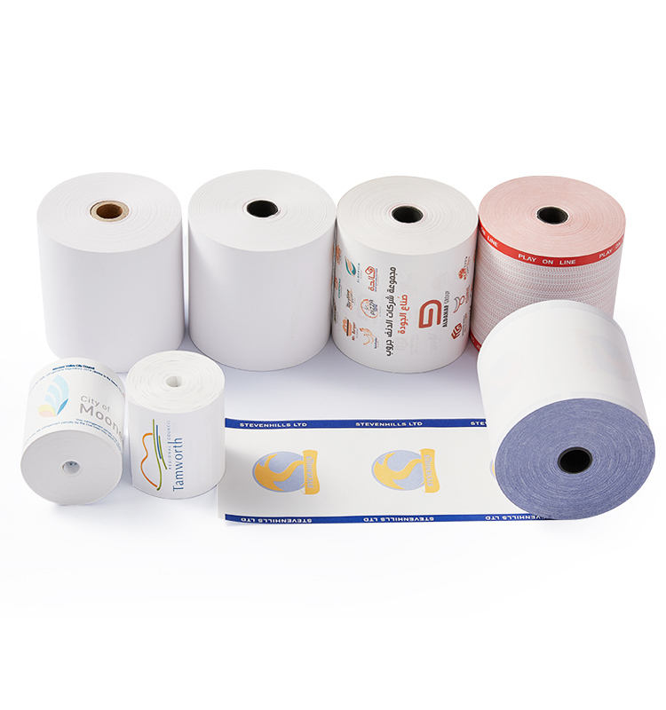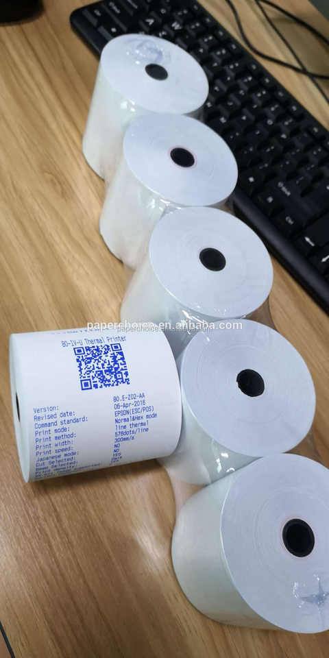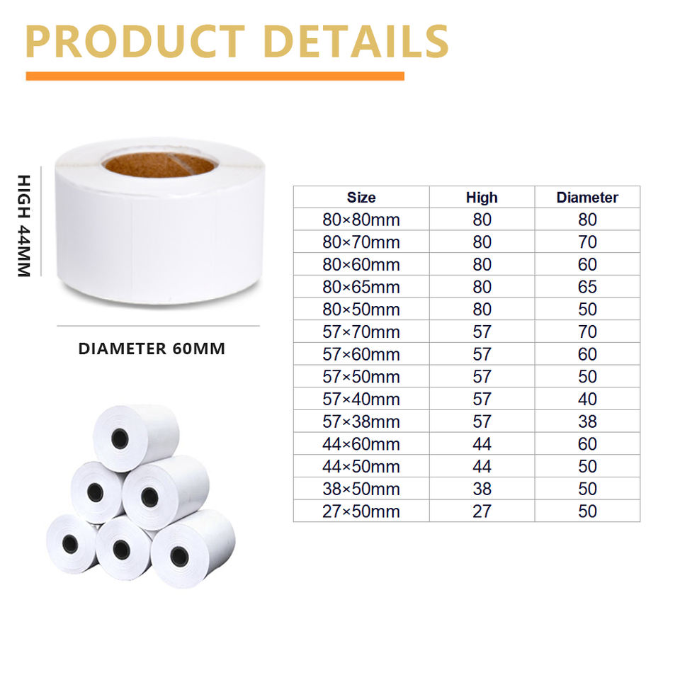 สติกเกอร์กระดาษความร้อนแบบม้วน ขนาด 80 มม. 57 มม. พิมพ์ด้านหลัง สำหรับเครื่องบันทึกเงินสด POS เครื่อง ATM ปราศจากสาร BPA สีสันสดใส โลโก้สั่งทำได้
