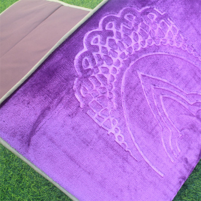 เสื่อสวดมนต์แบบพับได้สีม่วงพร้อมพนักพิงหลัง