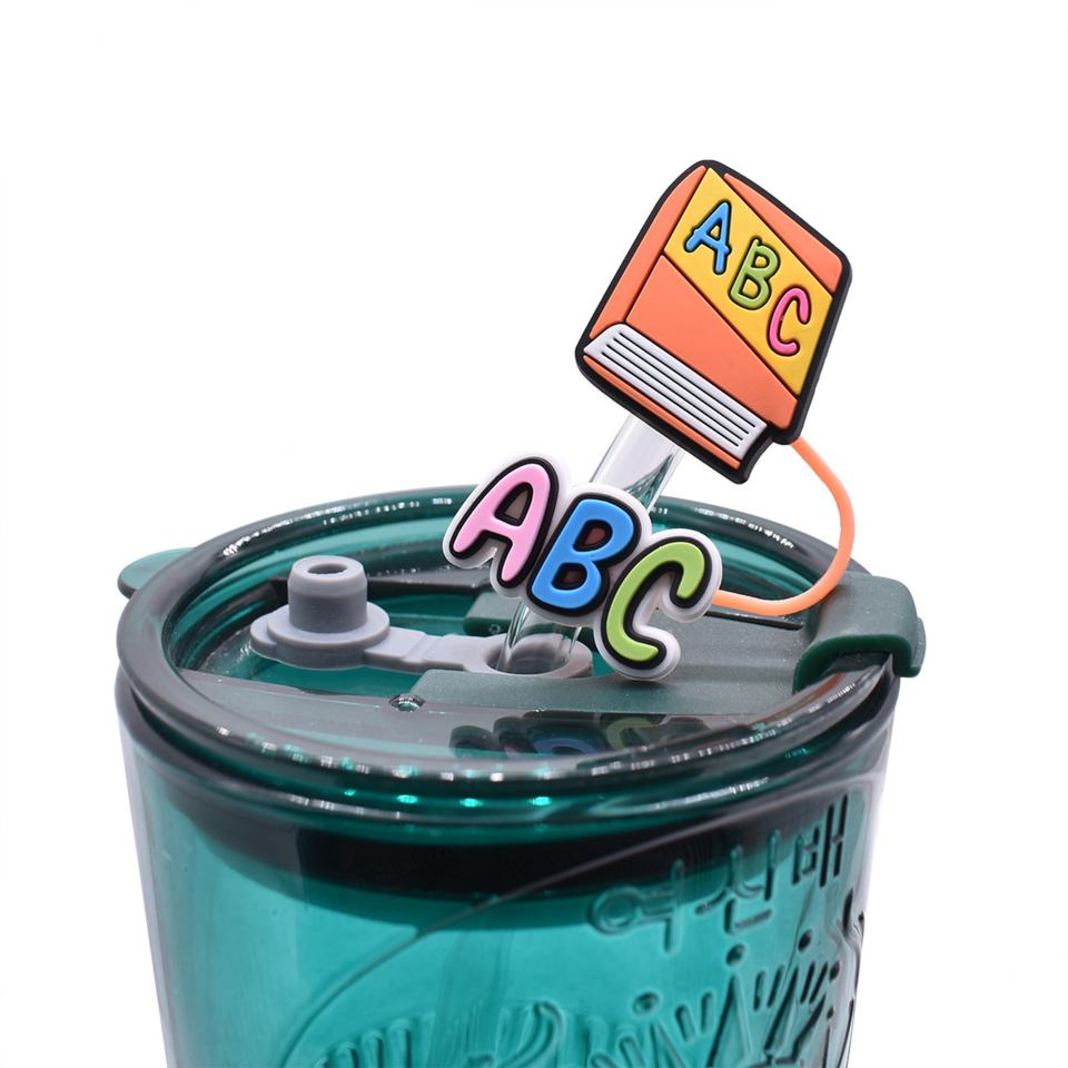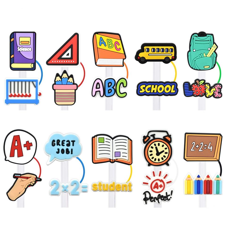 ชุดอุปกรณ์ตกแต่งหลอดดูดน้ำสำหรับนักเรียน ซีรีส์ Back to School Season หมวกฟาง 10 มม. หัวเข็มขัดตกแต่ง ป้องกันฝุ่น ทำจากพลาสติก