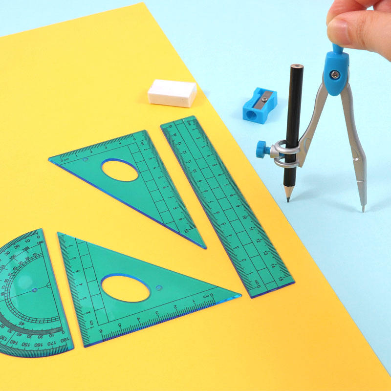 ชุดเครื่องเขียนสำหรับนักเรียน กลับไปโรงเรียน ชุดอุปกรณ์เรขาคณิต วงเวียน ไม้บรรทัด ดินสอ 8 ชิ้น