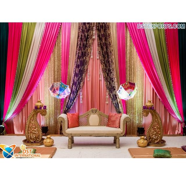 ฉากหลังและผ้าม่านสำหรับเหตุการณ์ Mehndi ฉากหลังเวที Mehndi หลายสี