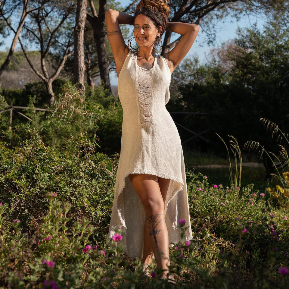 ชุดเดรสโบฮีเมียนผ้าฝ้ายดิบแบบเปิดหลัง ทรงไฮโลว์ พลิ้วไหว เหมาะสำหรับงานเทศกาล ของขวัญสำหรับผู้หญิง ขายส่ง