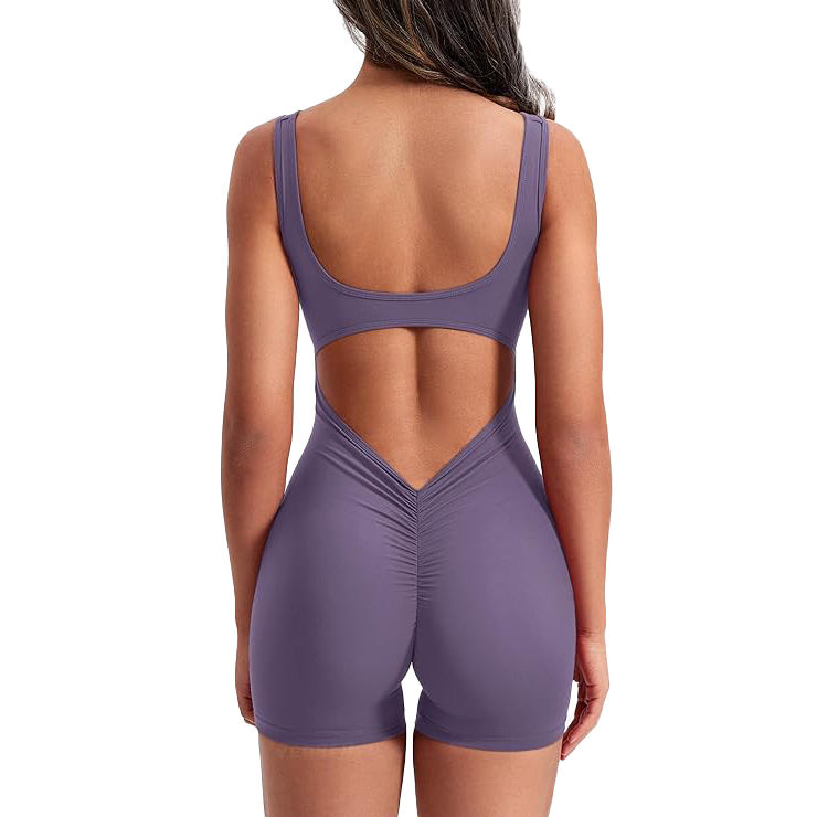 จั๊มสูทโยคะแบบเปิดหลังสำหรับผู้หญิง ผ้าไนลอนผสมสแปนเด็กซ์ บอดี้สูทแบบชิ้นเดียว สายไขว้ ยาวเต็มตัว เหมาะสำหรับใส่ออกกำลังกาย