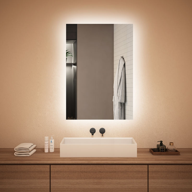 กระจกแบล็คไลท์ LED ติดผนังเรืองแสงในห้องน้ำกระจกสัมผัสอัจฉริยะสำหรับห้องน้ำ