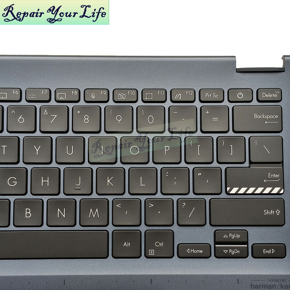 คีย์บอร์ดโน้ตบุ๊กแบบมีไฟพื้นหลังภาษาอังกฤษแบบ US สำหรับ ASUS Vivobook S14 Flip TP3402 TN3402Z TN3402Q 4H+NKGOM.60A 6K+NKGTM.60A พร้อมเคสสีน้ำเงิน