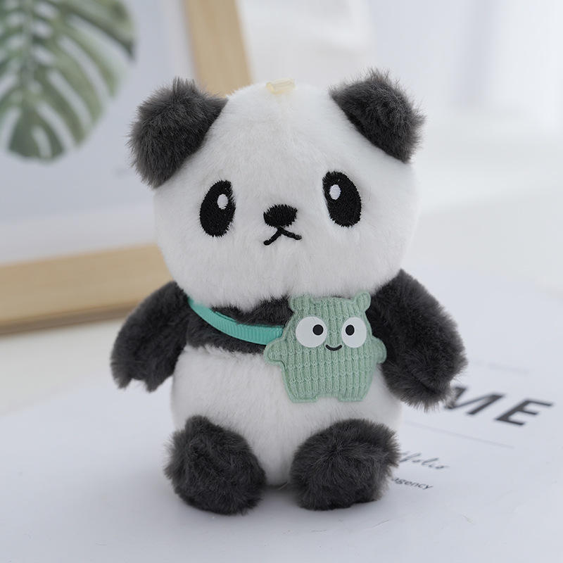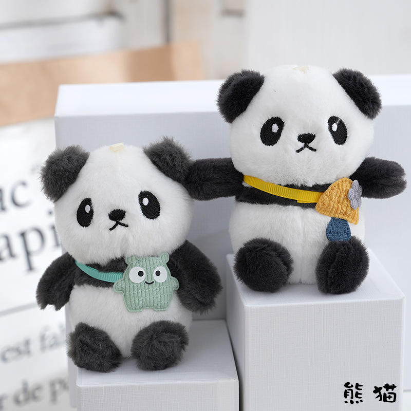 กระเป๋าเป้สะพายหลังแพนด้าจี้ตุ๊กตาน่ารักเครื่องจับตุ๊กตาอินเทอร์เน็ตคนดังแพนด้ายักษ์พวงกุญแจเครื่องประดับขายส่ง