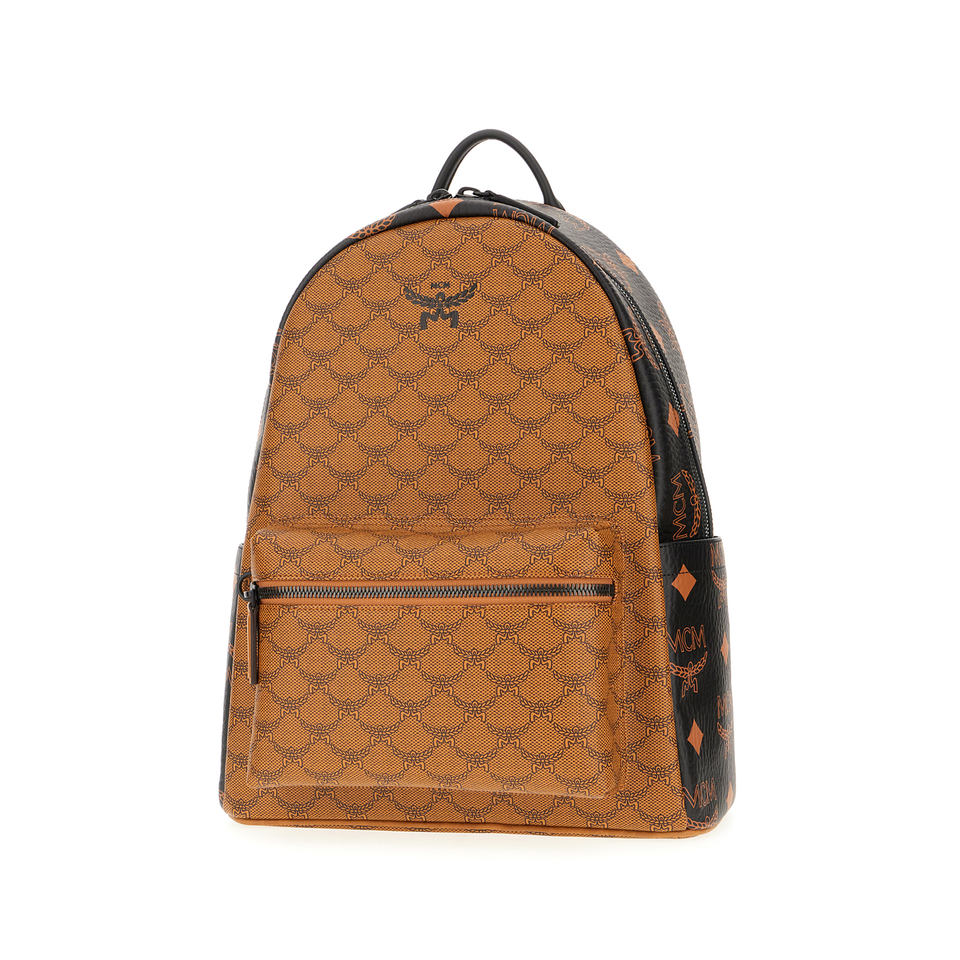 กระเป๋าเป้สะพายหลังตระหนักในหนังสังเคราะห์กรวดเคลือบโดดเด่นด้วยการพิมพ์ Visetos ลอเรลบนพื้นผิวทั้งหมด-หนังฮัน