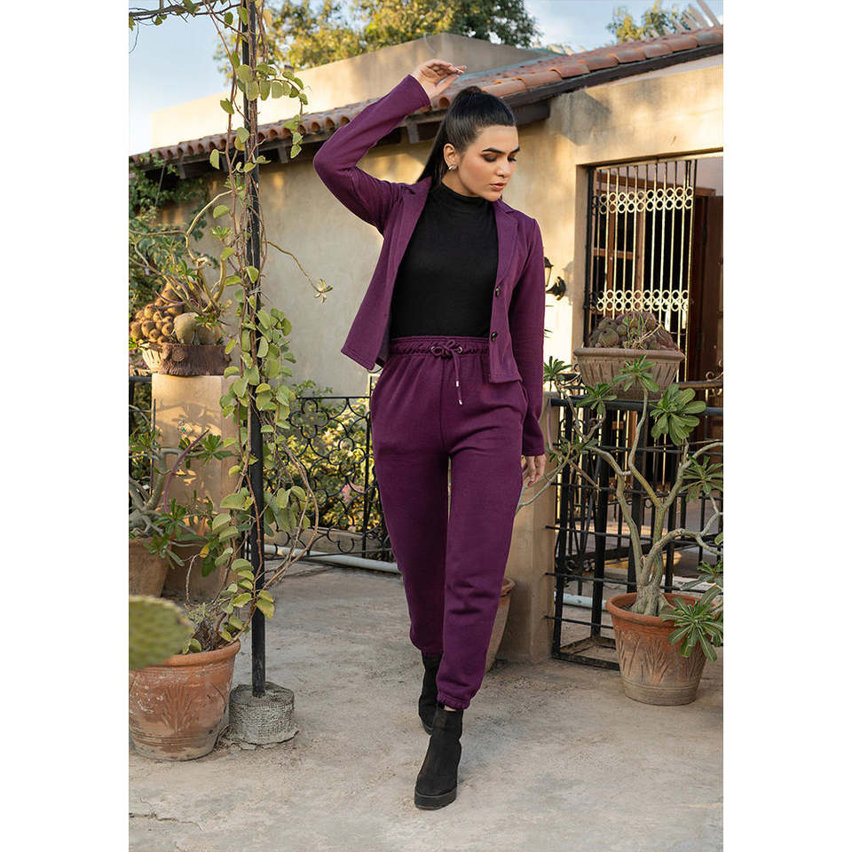 ชุดเซ็ทลำลอง 2 ชิ้น สไตล์สาวมั่น สำหรับผู้หญิง กางเกงขายาวเอวสูงผ้ายืด แขนยาวแบบครอปท็อป