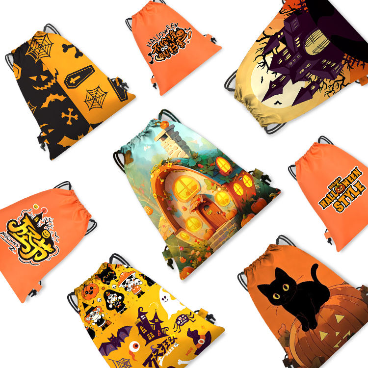 กระเป๋าผ้าใบสำหรับเด็กลายฮาโลวีนมีเชือกดึงผ้าแคนวาเนต