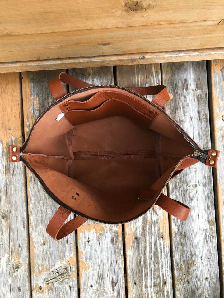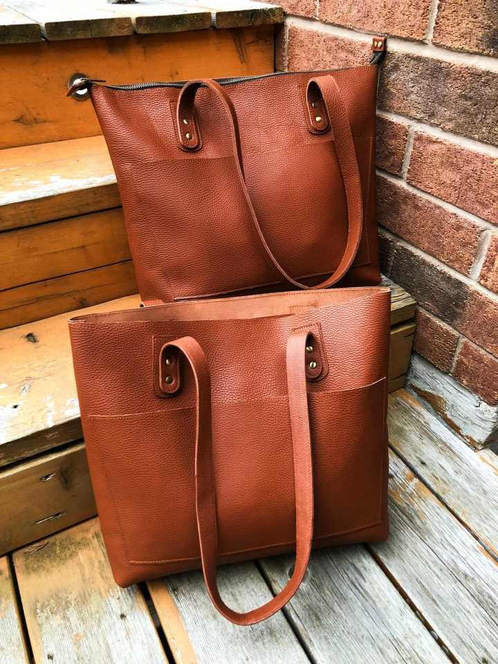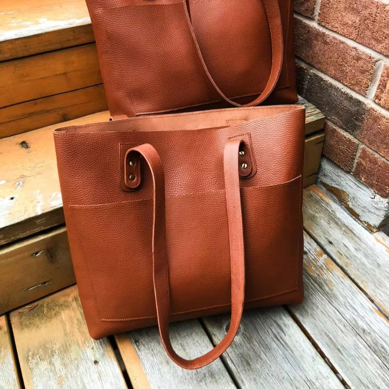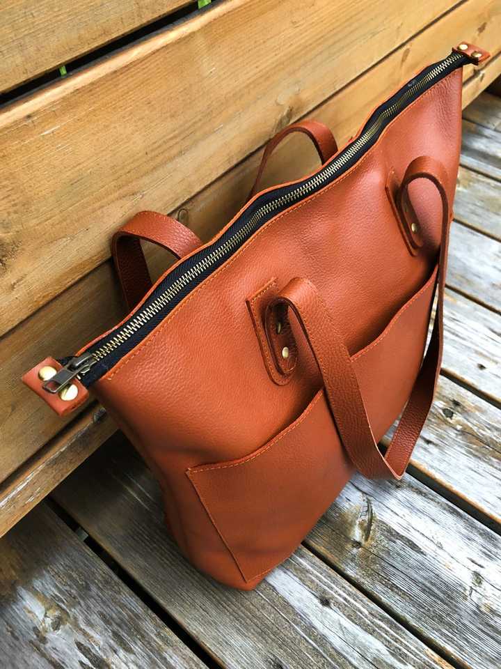 กระเป๋าโท้ทหนังแท้สไตล์วินเทจสำหรับทุกเพศ พร้อมซิปสีพื้นทำมือ จุของได้เยอะ สะพายไหล่ รุ่น LTB-0268