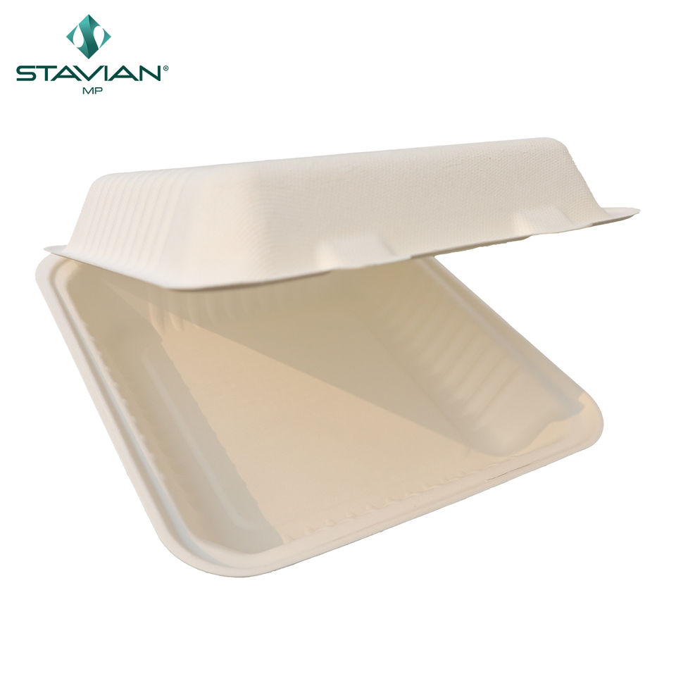 ภาชนะใส่อาหารแบบย่อยสลายได้ทำจากเยื่อภาชนะใส่อาหารไมโครเวฟปลอดภัยแบบฝาพับ9x9มี3ช่อง