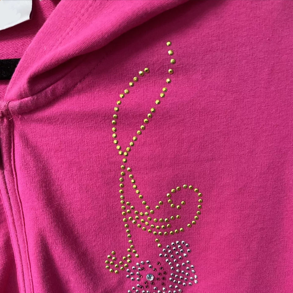 เสื้อฮู้ดดี้ผ้าเฟรนช์เทอร์รี่เนื้อหนัก 400 กรัม พิมพ์ลายกราฟิก ตกแต่งโลโก้ด้วยคริสตัลเต็มตัว พร้อมลายพิมพ์เพชรทั่วตัว