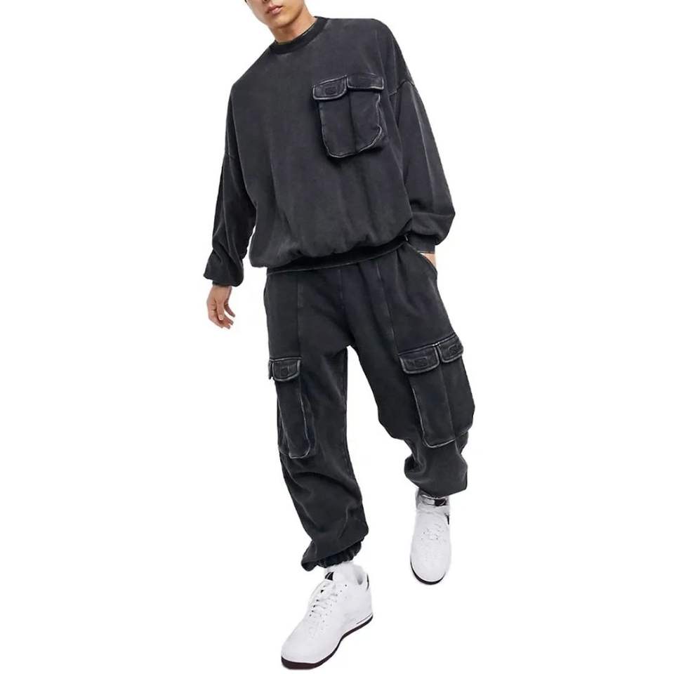 ชุดวอร์มพิมพ์ลายกรดสำหรับผู้ชายชุดวอร์มทรงหลวมเปิดไหล่มีฮู้ดชุดเสื้อผ้าแนวสตรีทแวร์สำหรับผู้ชาย