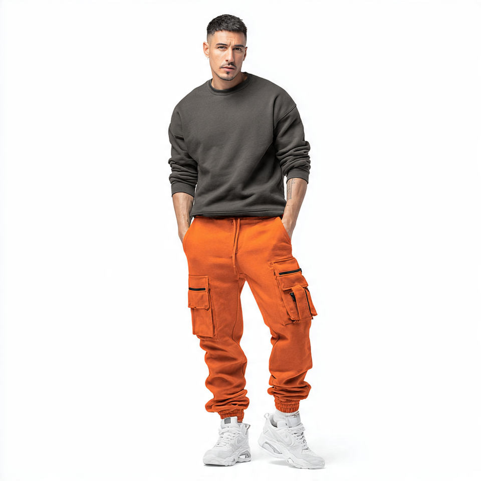 กางเกงวอร์มผู้ชายผ้าฟลีซแบบมีกระเป๋า6กระเป๋าสำหรับฤดูหนาวกางเกงผ้าฟลีซสำหรับวิ่งกางเกงวิ่งกางเกงคาร์โก้500 GSM