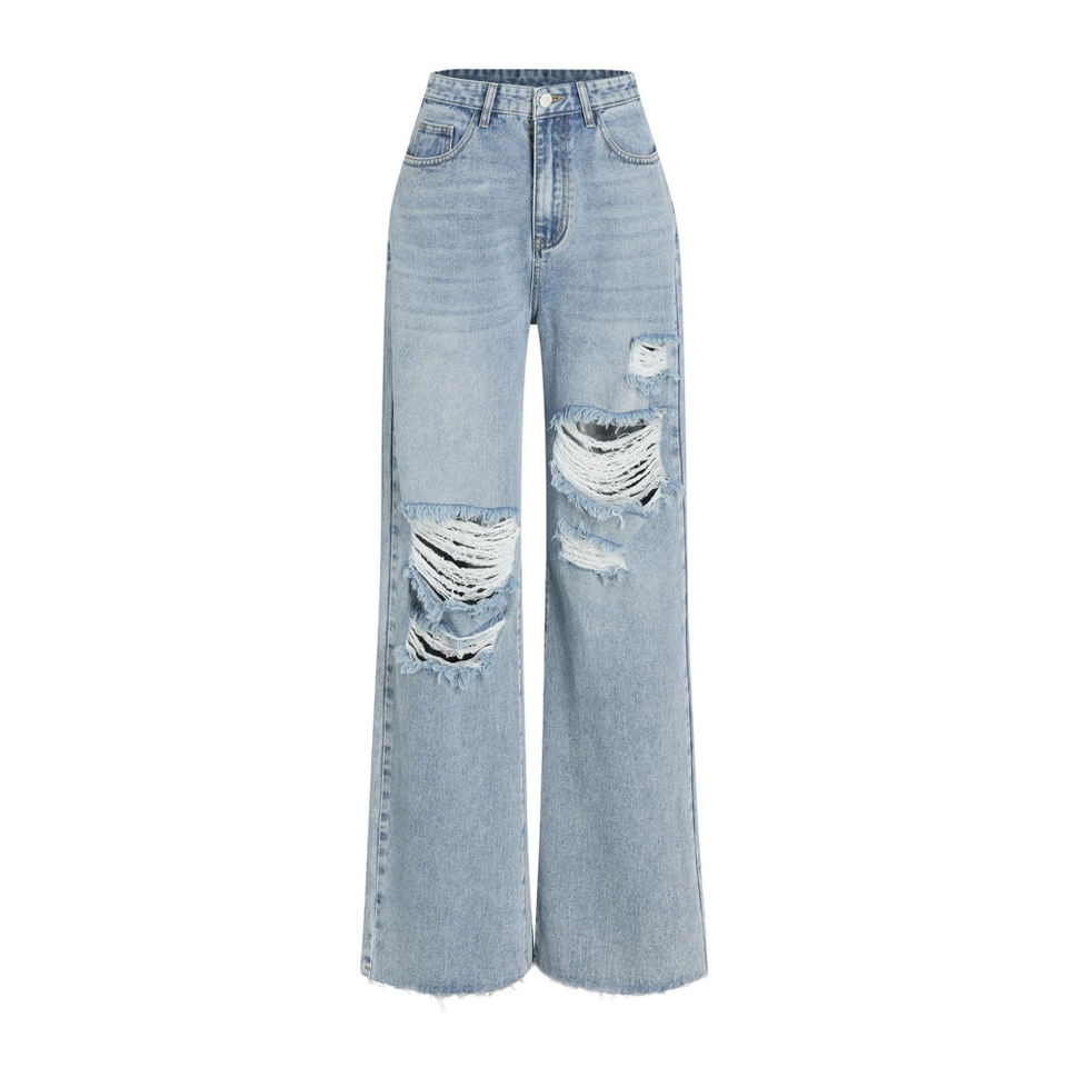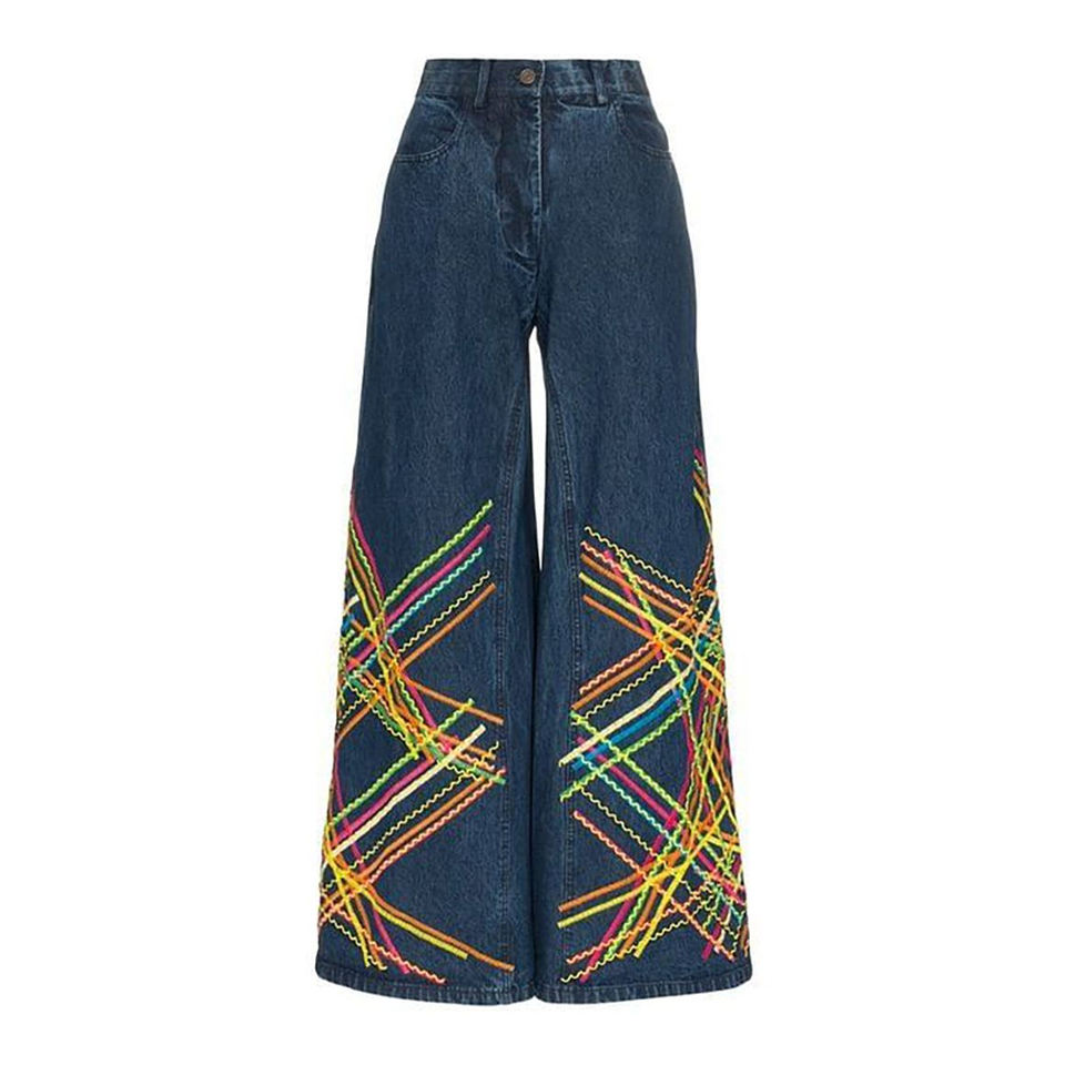 กางเกงยีนส์ทรงหลวมสีและดีไซน์ตามสั่ง ปักโลโก้ กางเกงยีนส์ผู้หญิงประดับเพชร กางเกงยีนส์ผู้หญิงแบบฟอก
