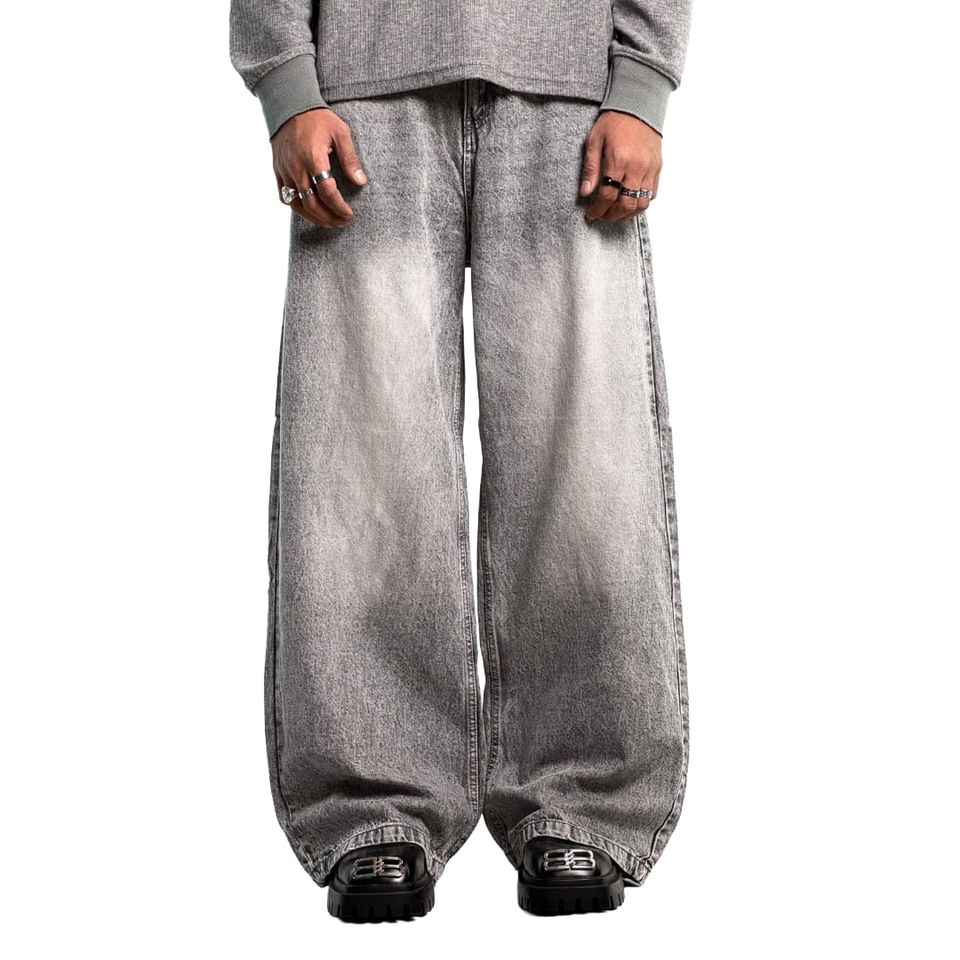 กางเกงยีนส์ทรงแบ็กกี้สีดำ วินเทจ ล้างสีแบบแอซิด พร้อมกระเป๋าแบบลำลอง ลดราคาพิเศษ พร้อมโลโก้สั่งทำ