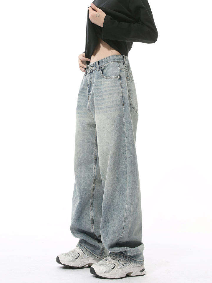 กางเกงยีนส์ทรงหลวมสำหรับทุกเพศ กางเกงเดนิมทรงหลวม สวมใส่สบาย สไตล์สตรีทแวร์ สำหรับใส่ลำลองทุกวัน