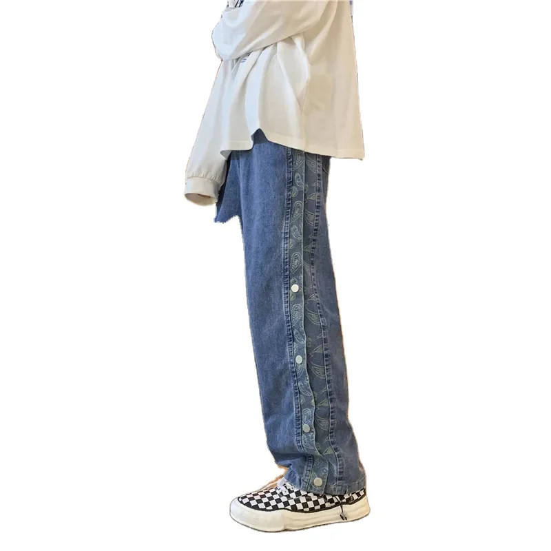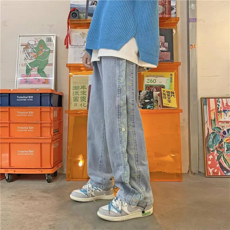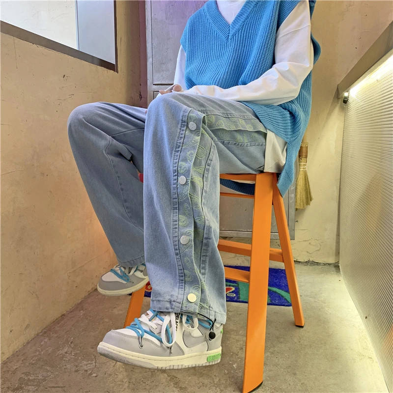 กางเกงยีนส์ขากว้างเอวสูงคัตเวย์ยาวยุค 90