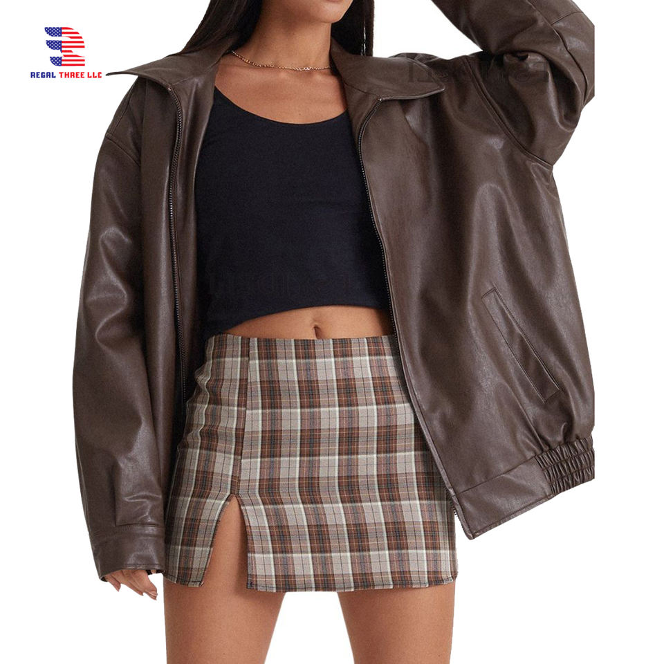Women's Oversize Baggy Streetwear Motorcycle Leather Jacket Genuine Leather Coat Cotton Filling Knitted Design Winter Fashion