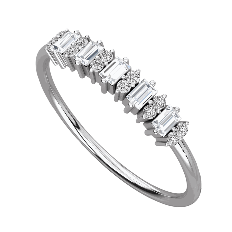 แหวนแต่งงานเพชรทรงบาแกตต์และทรงกลมสำหรับเธอ