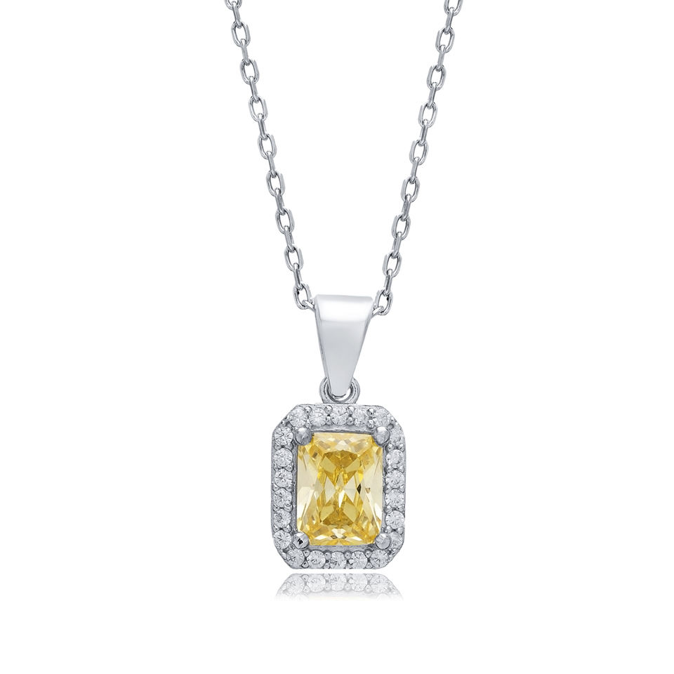 บาแกตต์ตัดซิทรินหิน CZ รูปสี่เหลี่ยมผืนผ้าสร้อยคอเงินเสน่ห์ตุรกีแฮนด์เมดขายส่งเครื่องประดับเงินแท้ 925