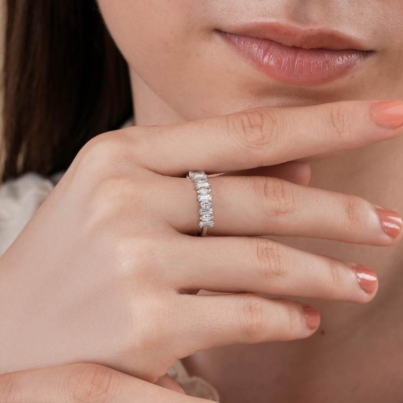 Marquise & Baguette Moissanite Half Eternity Band Ring