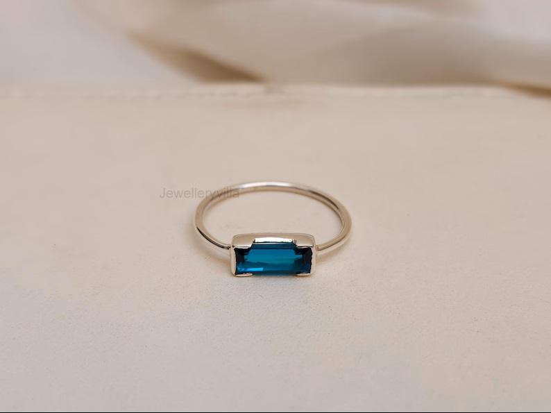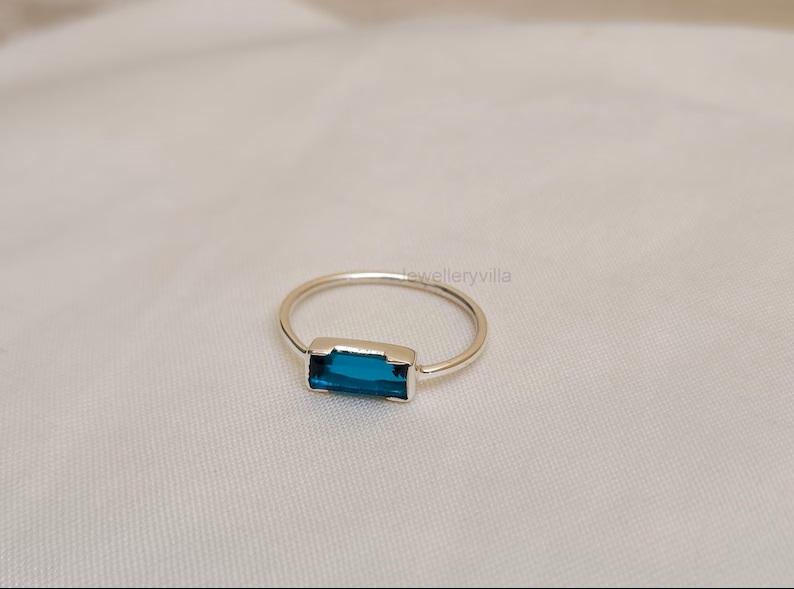 แหวนพลอยสีเขียวทรงมรกต ตัวเรือนเงินแท้ 925 ชุบทอง ของขวัญวันเกิด/วันครบรอบ สไตล์มินิมอล