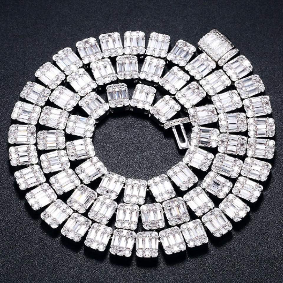 สร้อยคอบาแกตต์เย็นแบบโซ่เงินสเตอลิงฮิปฮอปสุดหรู