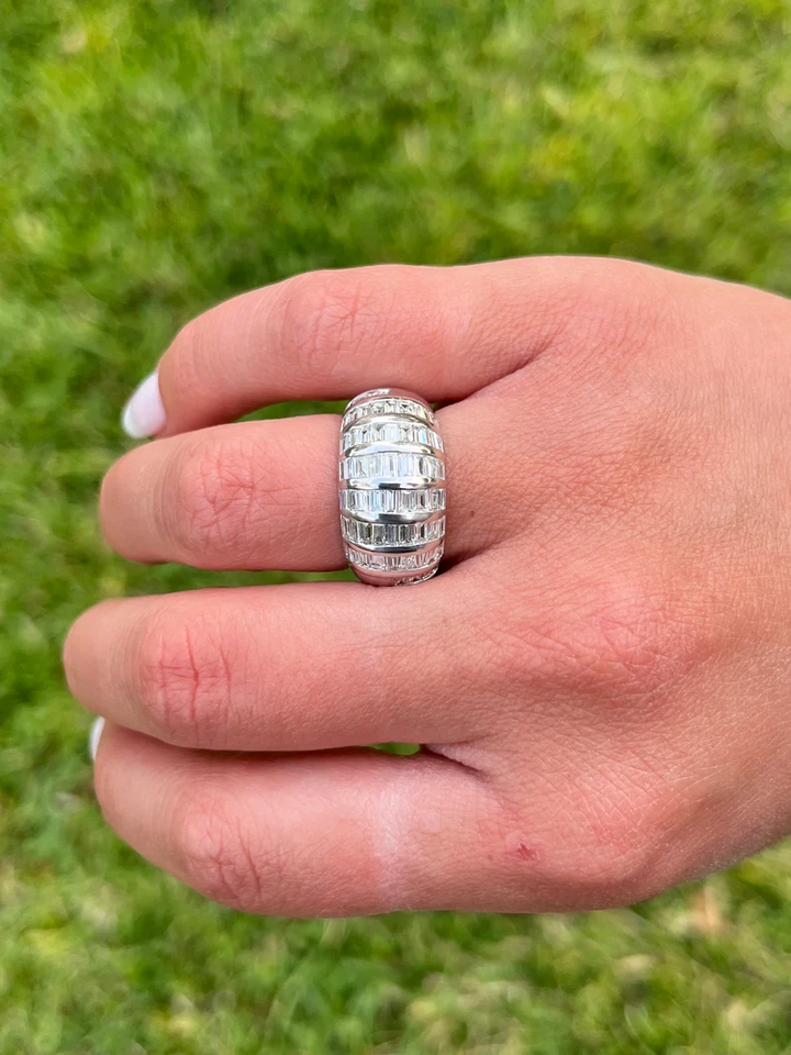 Baguette แหวนโดมคลัสเตอร์เพชรสีขาว925ทึบเงินสเตอร์ลิงเครื่องประดับแฟชั่นคลาสสิกสำหรับผู้หญิง