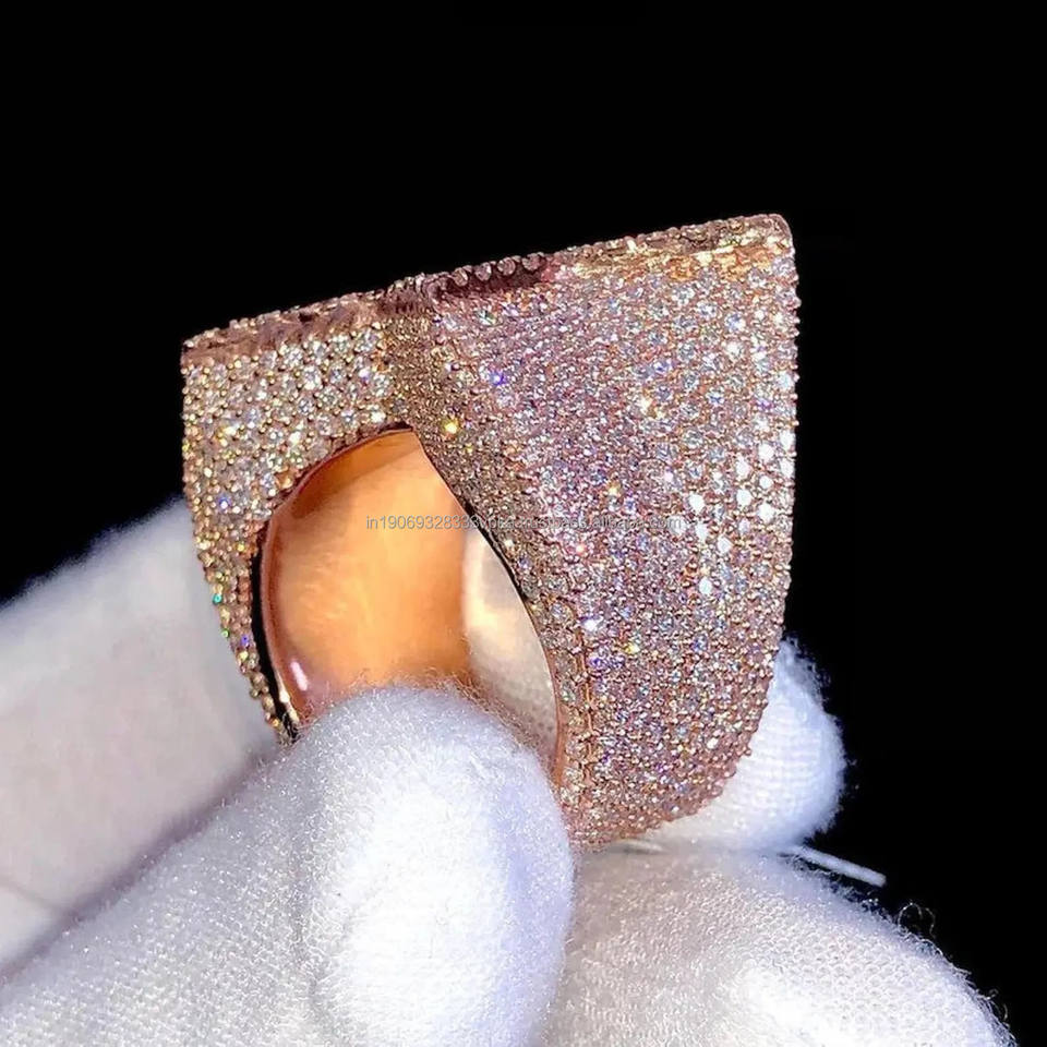 แหวนแต่งงานสไตล์ฮิปฮอปประดับเพชรโมอิสซาไนต์ทรงบาแกตต์และทรงกลม ดีไซน์หรูหรา ทำจากเงินแท้ 925