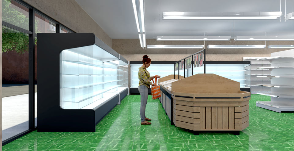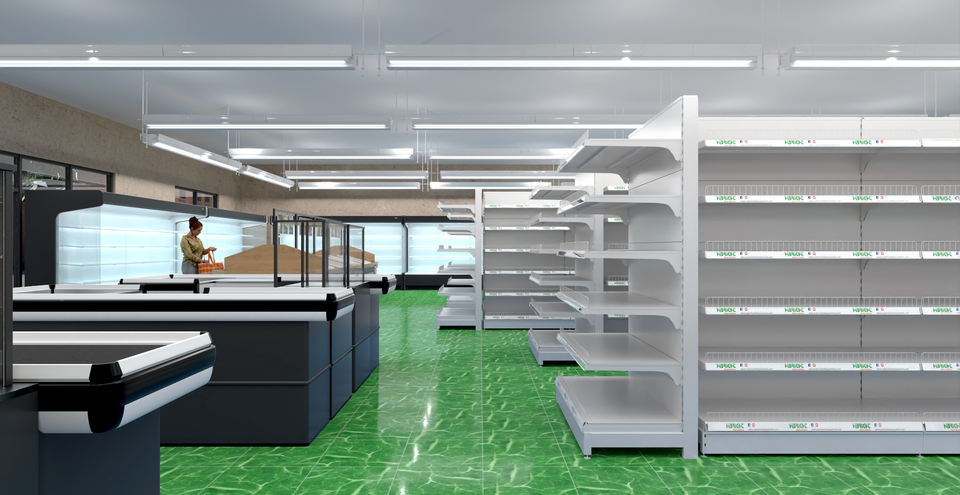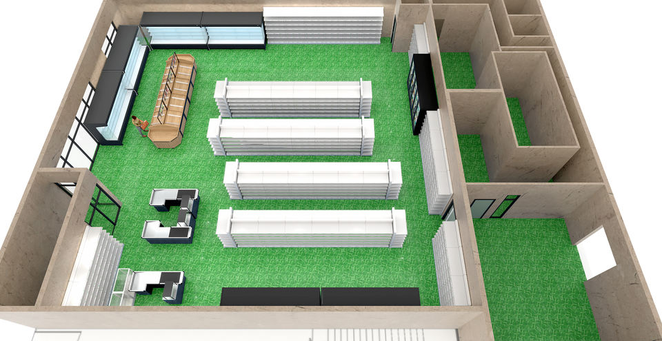 Bahamas Supermarket Convenience Store Double-Sided Metallic Heavy Duty 3D Layout Design Render