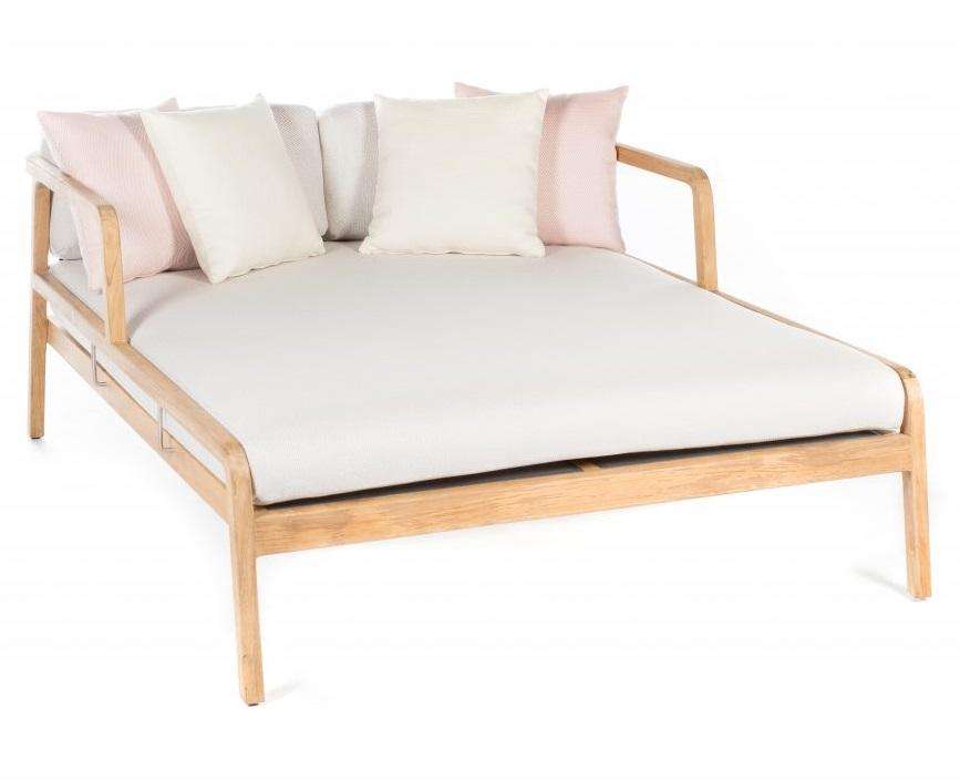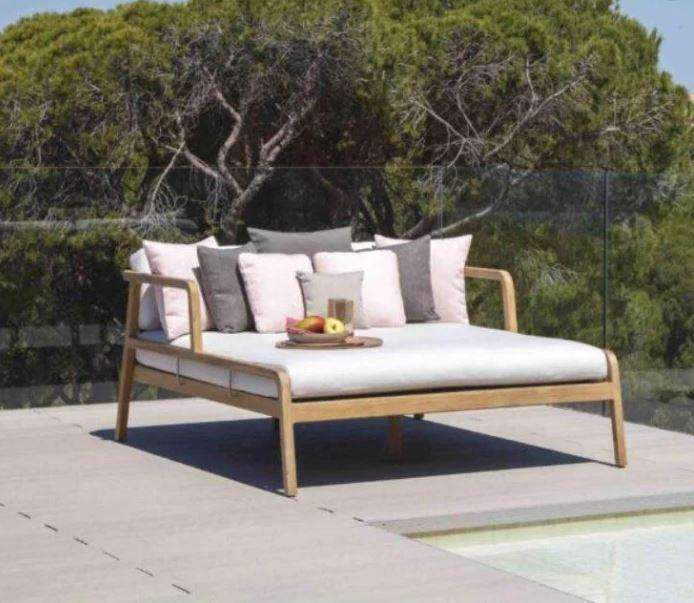 เตียงอาบแดดคู่หรูหรา Bahryn ทำจากไม้สักแท้ ทนทาน พร้อมเบาะรองนั่งสำหรับทุกสภาพอากาศ มีสีให้เลือกหลากหลาย เหมาะสำหรับโรงแรมและการใช้งานกลางแจ้ง