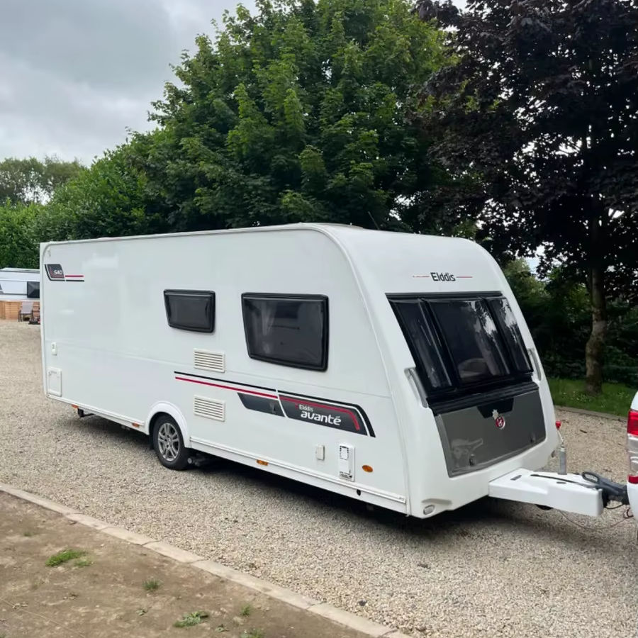 รถคาราวานพับได้ขนาดเล็ก Bailey Pageant 6 ที่นอน พร้อมระบบกันสะเทือนอิสระและเตียงสองชั้นแบบติดตั้งถาวรสำหรับการตั้งแคมป์ 4 คน
