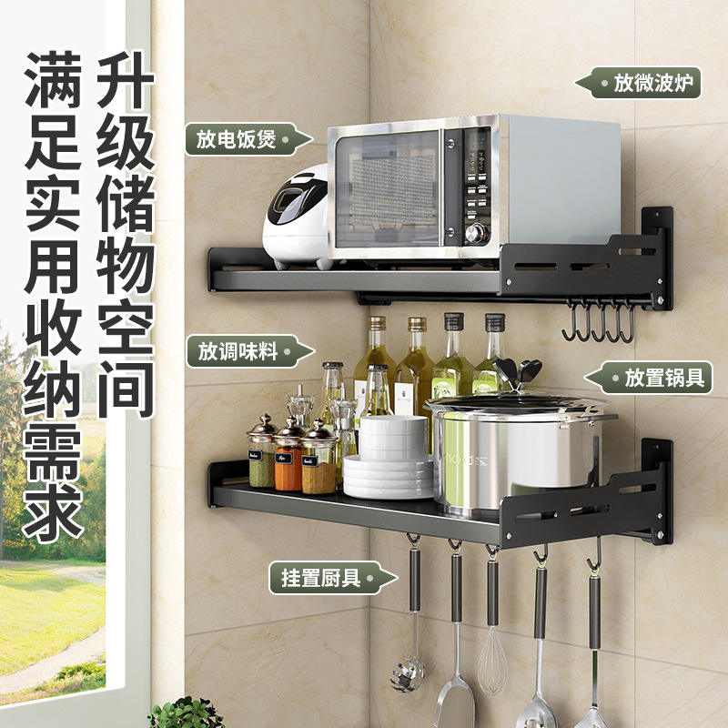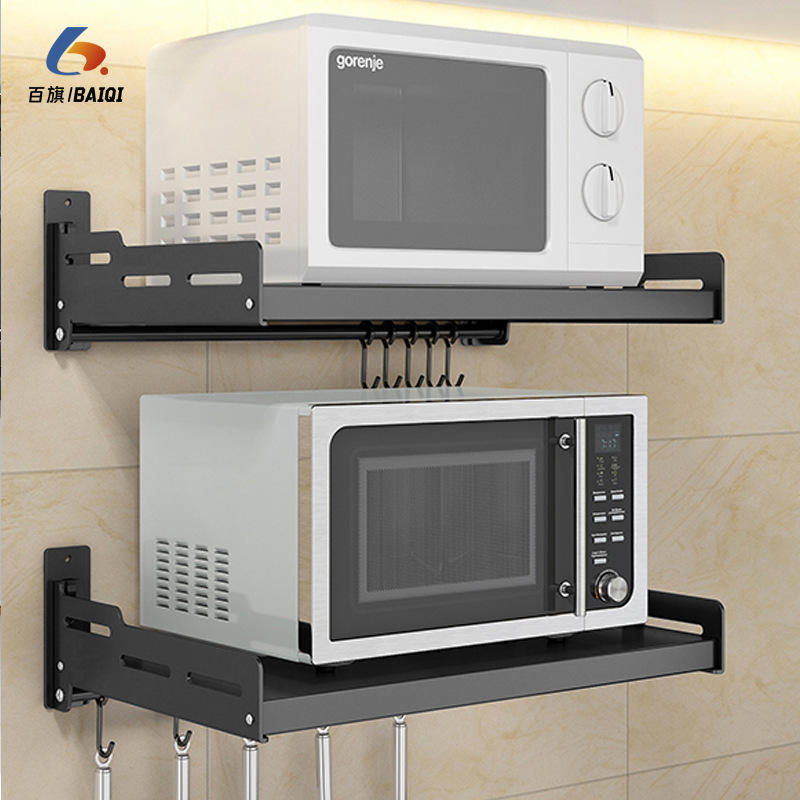 ชั้นวางไมโครเวฟ Baiqi แบบติดผนัง สแตนเลส ขนาดใหญ่ ชั้นวางของในครัว ดีไซน์ไม่ต้องเจาะผนัง สไตล์มินิมอล