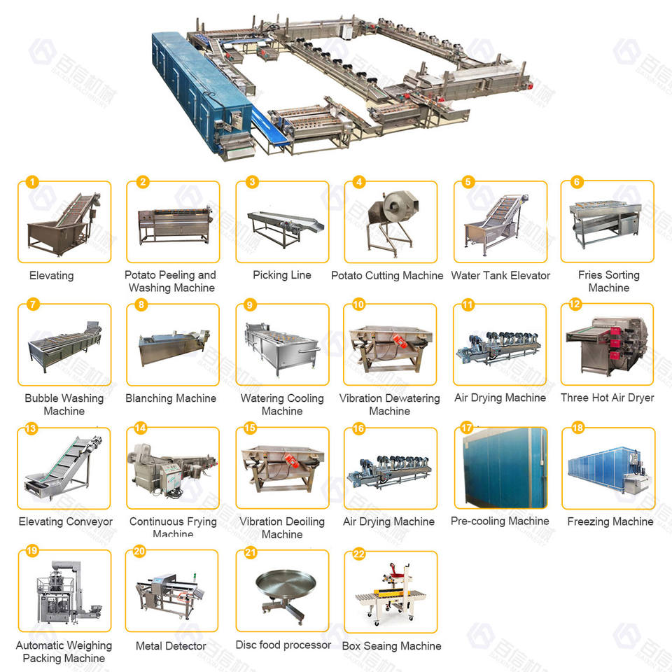 สายการผลิตมันฝรั่งทอดแช่แข็ง/มันฝรั่งทอดกรอบสามารถปรับแต่งได้