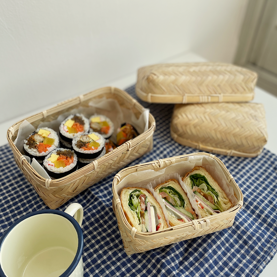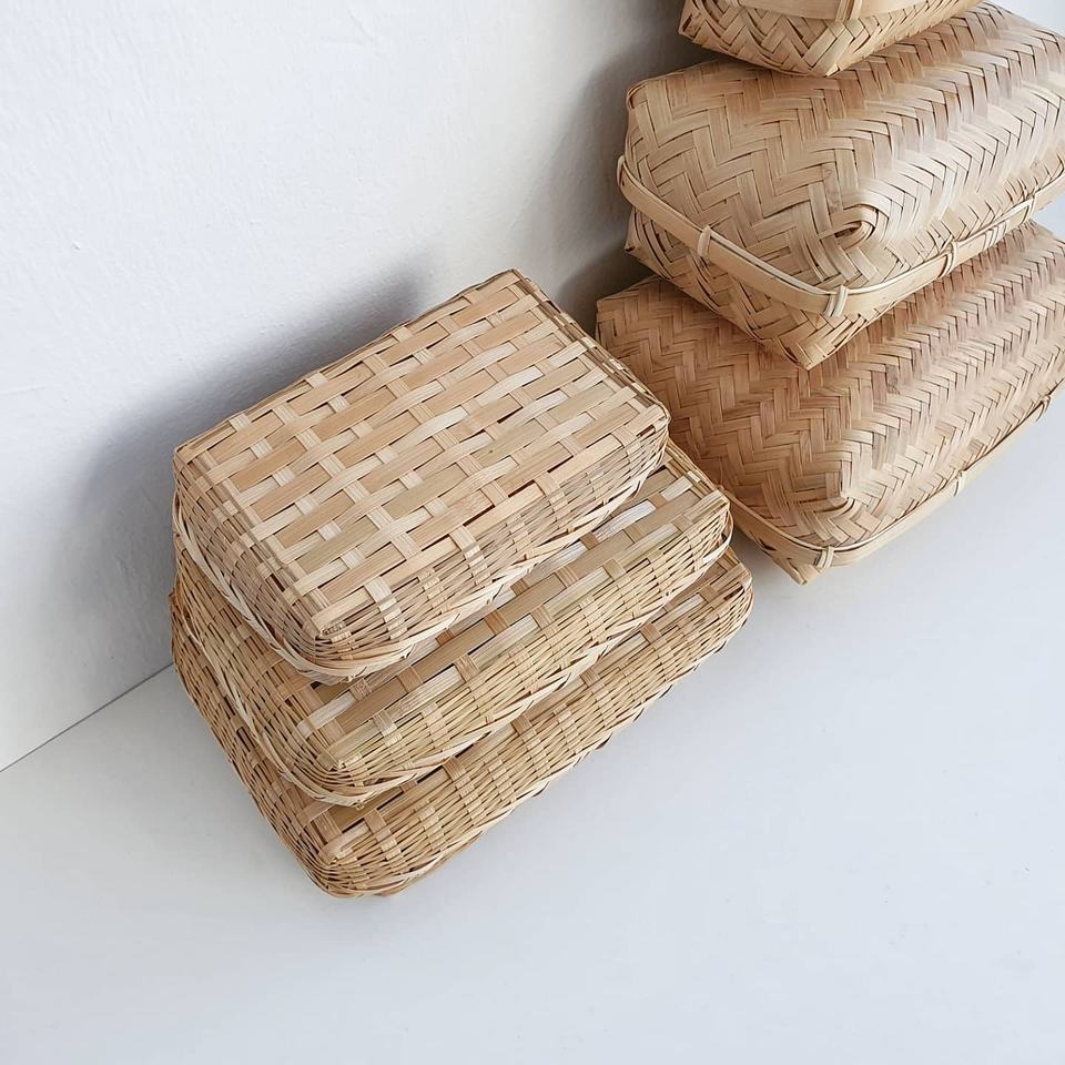 กล่องไม้ไผ่ทรงสี่เหลี่ยมสำหรับใส่เค้กเบเกอรี่กล่องธรรมชาติสำหรับคุกกี้ที่เก็บบิสกิตบราวนี่