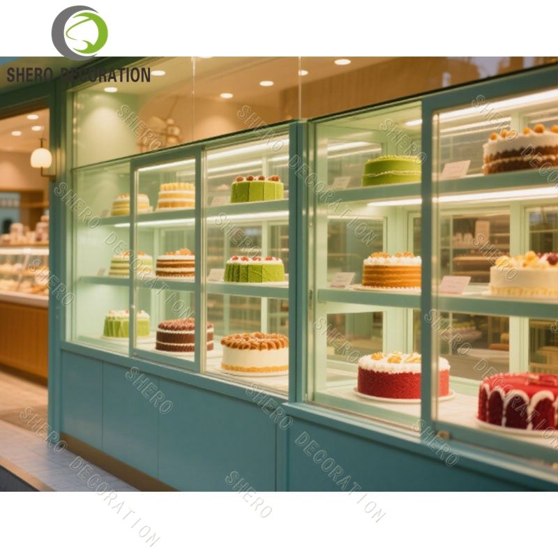ตู้โชว์เบเกอรี่หรูหรา กระจกโค้ง ตู้โชว์ขนมหวาน เค้ก คุณภาพสูง เฟอร์นิเจอร์เบเกอรี่