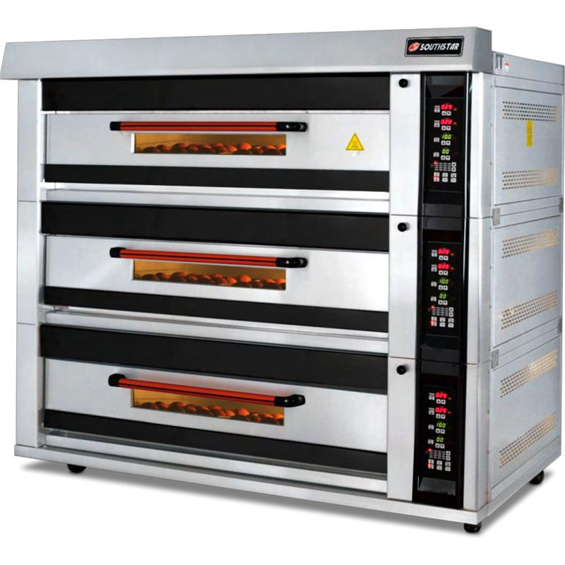 เตาอบแก๊สไฟฟ้าสำหรับอบขนมปังและเค้กเบเกอรี่เชิงพาณิชย์3ชั้น9ถาด NFR-90H อุปกรณ์เบเกอรี่