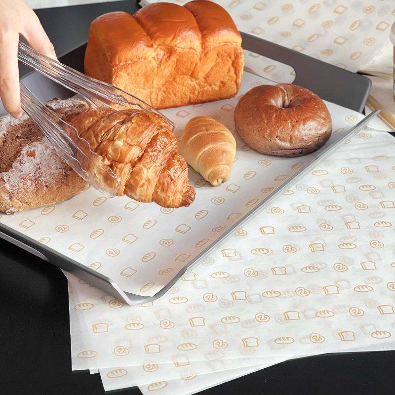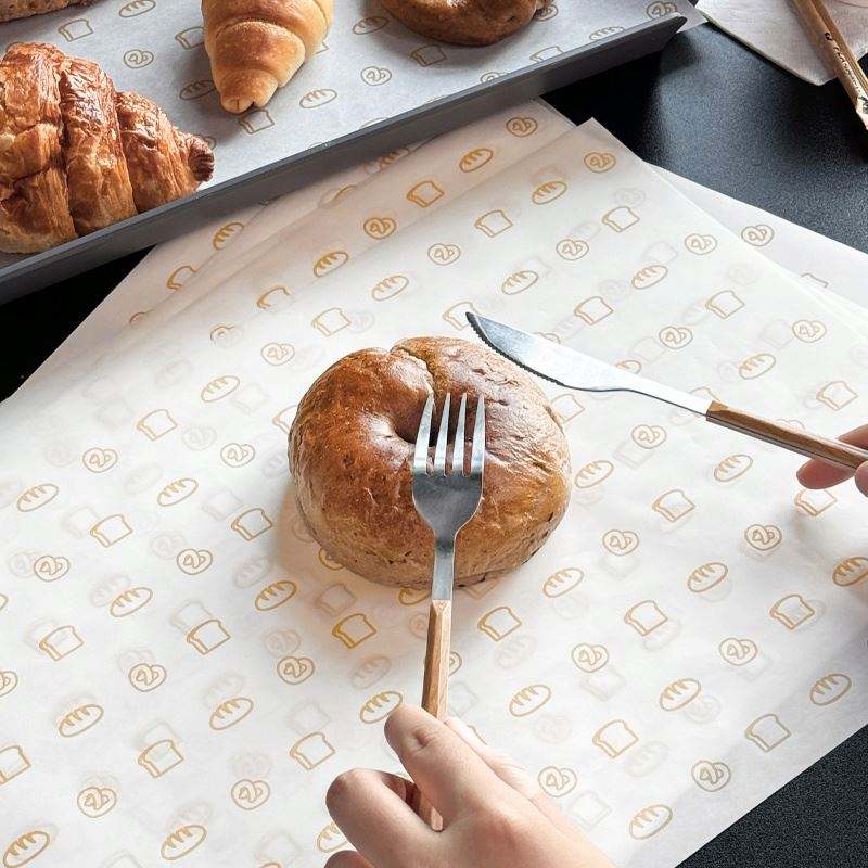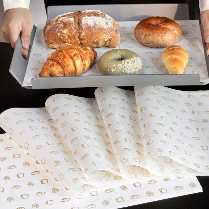 แผ่นรองกระดาษกันไขมันสำหรับห่อขนมปังและบรรจุภัณฑ์ขนมปังปิ้ง ของร้านเบเกอรี่