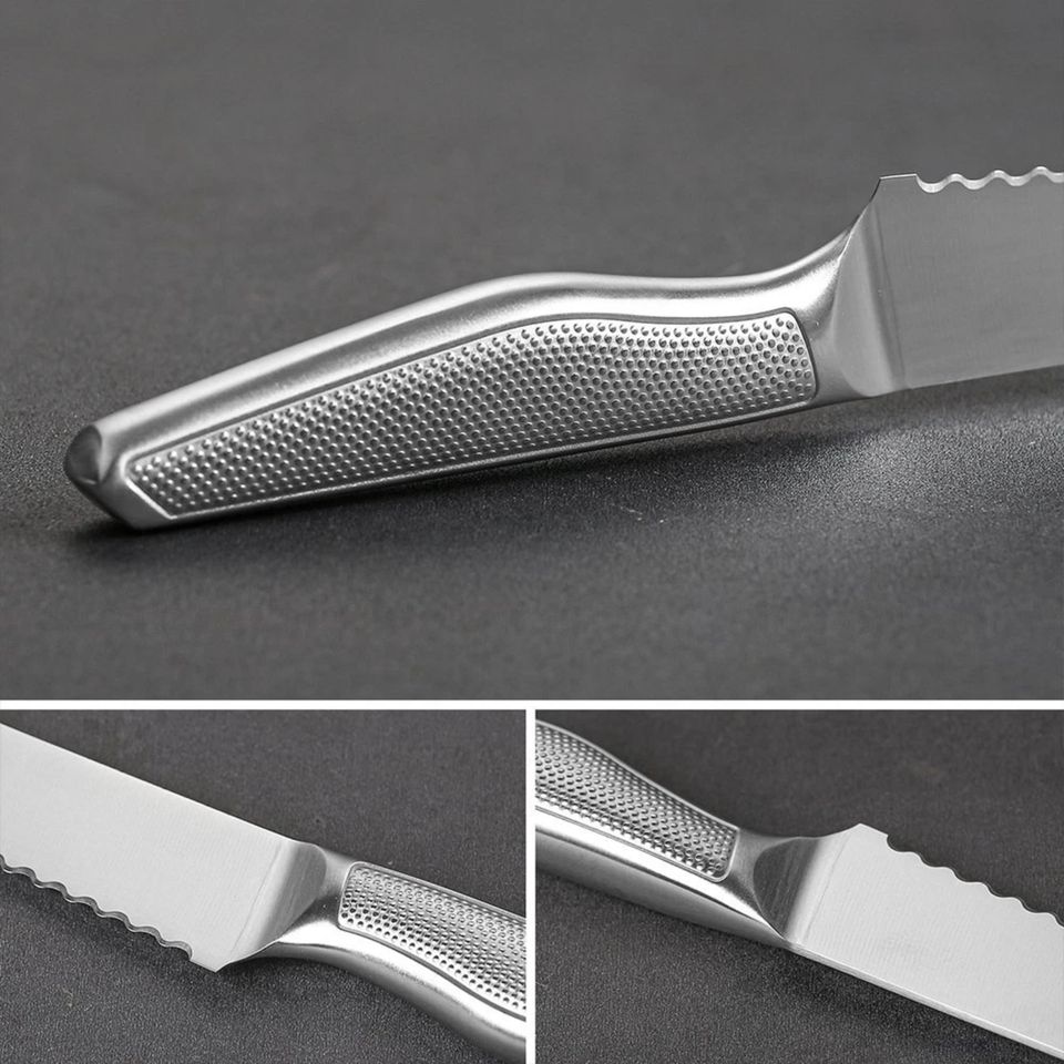 Zuqa มีดเบเกอรี่สแตนเลสแบบใช้แล้วทิ้งมีดขอบหยักด้ามจับ Micarta สำหรับตัดเปลือกขนมปังเบเกิลโฮมเมด