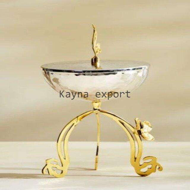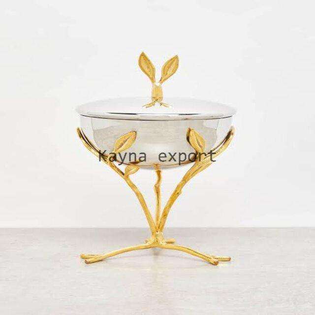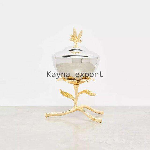 ที่จุดธูปชามสเตนเลสดีไซน์รูปใบไม้สีทองพร้อมโลหะทองเหลืองดีไซน์รูปดอกไม้