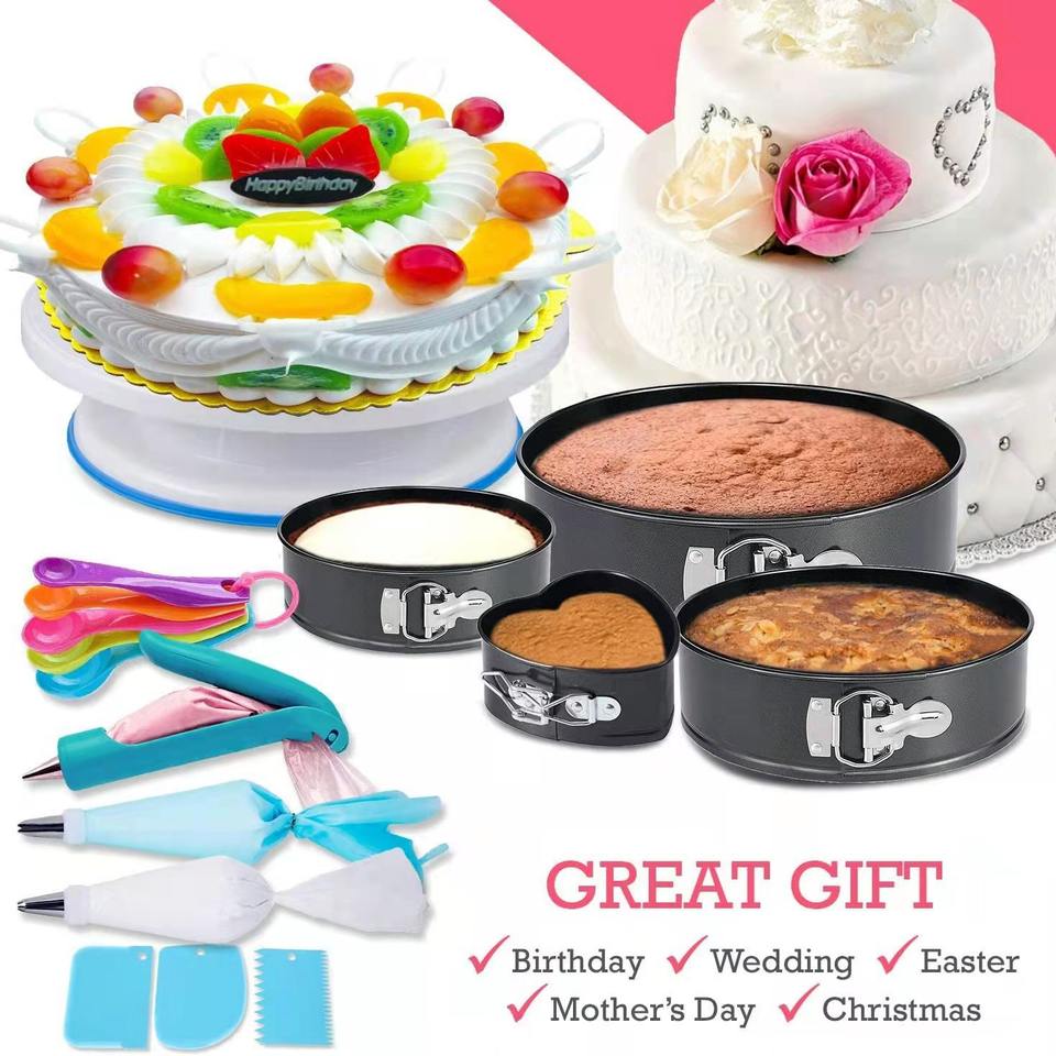 ชุดอุปกรณ์ทำขนม 360 ชิ้น พร้อมจานหมุนสำหรับตกแต่งเค้ก อุปกรณ์ทำขนม ที่ปาดครีม ชุดตกแต่งครีม