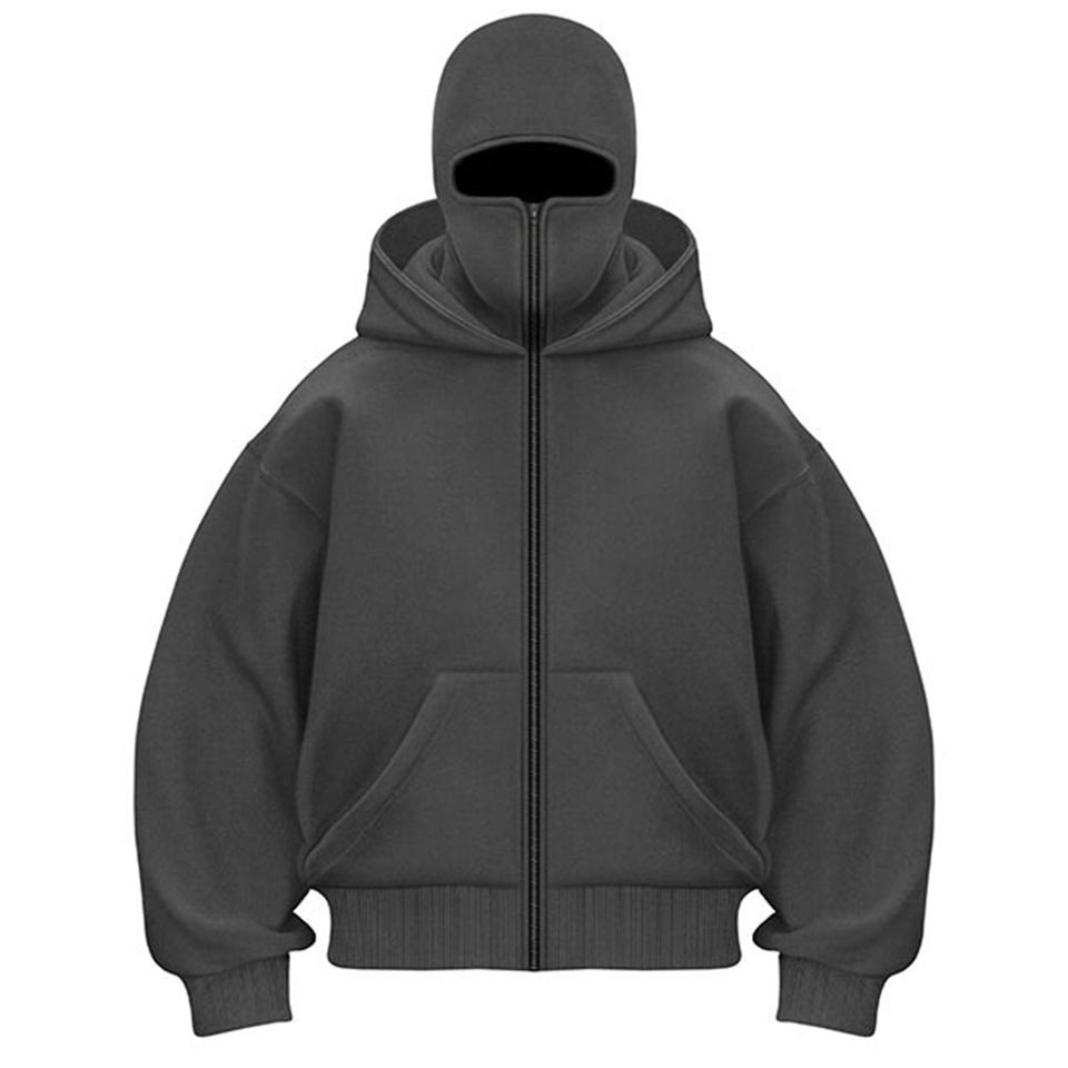 เสื้อฮู้ดแบบมีซิปคลุมหน้า รับสกรีนโลโก้ แฟชั่นเสื้อฮู้ดผ้าฟลีซ หน้ากากสกี เสื้อฮู้ดผู้ชายสไตล์สตรีท เสื้อฮู้ดซิปเต็มตัวพร้อมหน้ากาก เสื้อฮู้ดผู้ชาย