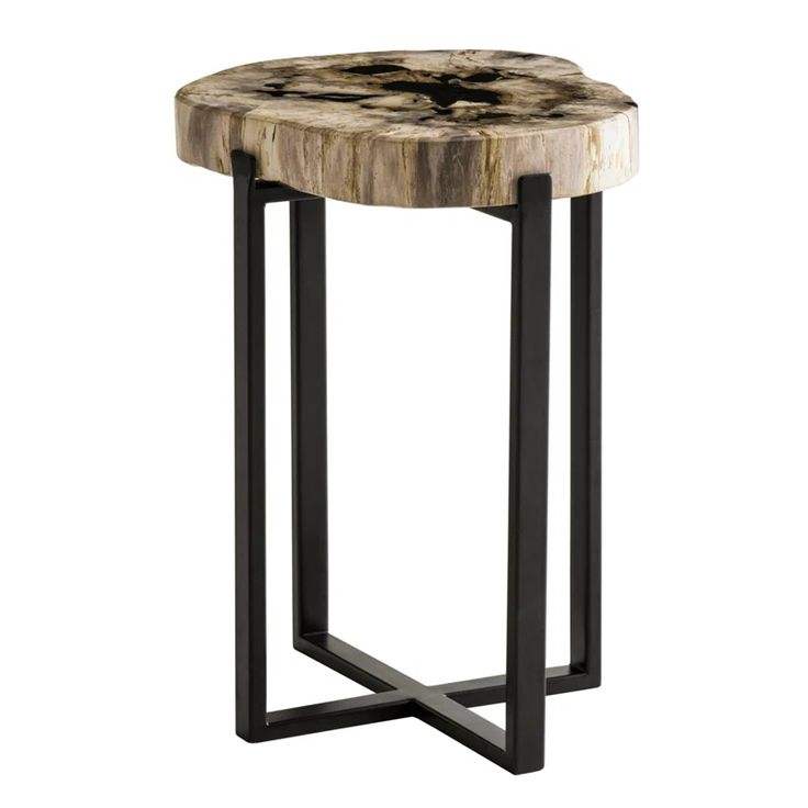โต๊ะข้างเหล็กหน้าไม้ทรงสมดุล ออกแบบมาเพื่อความมั่นคงโดยใช้เหล็กหนักเป็นโครงสร้างและพื้นผิวไม้หนา