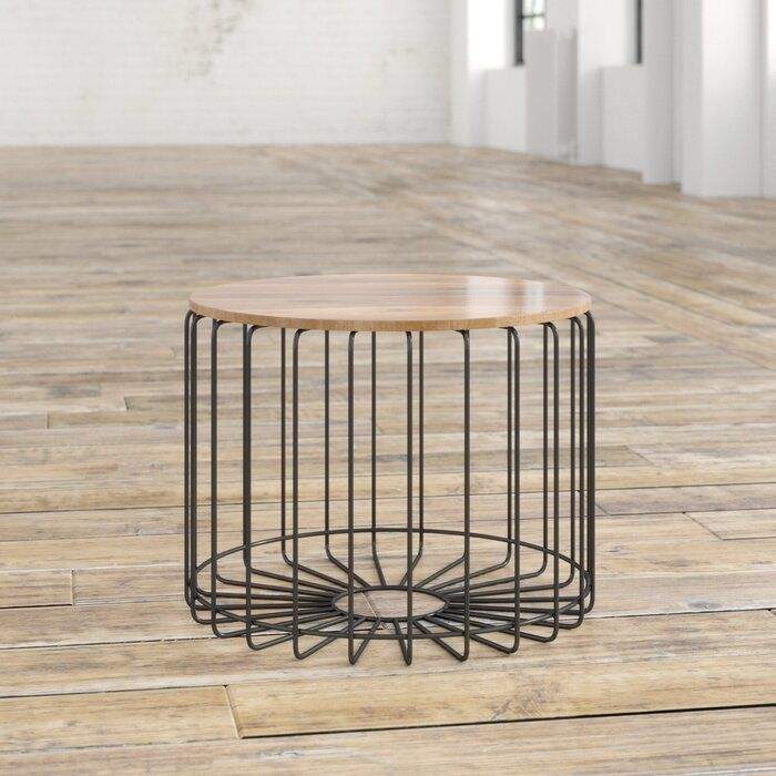 โต๊ะข้างเตียงเหล็ก ท็อปไม้