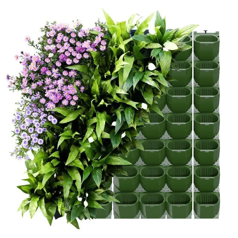 กระถางต้นไม้แนวตั้งติดผนังระเบียงในบ้านต้นไม้ในร่มกำแพงสีเขียวแบบตั้งซ้อนได้ผนังสวนแนวตั้งแบบขยายได้